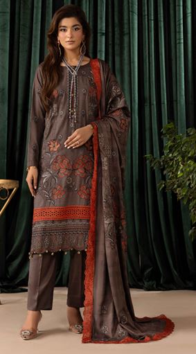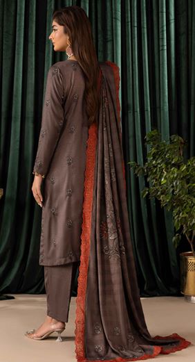 ALIF V/22 04 Airjet fancy Peach wool emb shirt with fancy wool emb duppta with 4 side pati Airjet Peach trouser