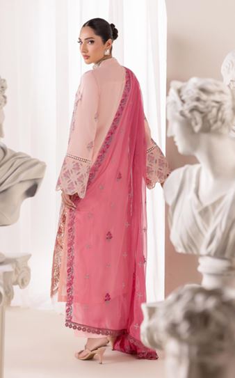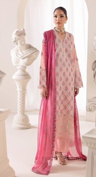EXCLUSIVE EDITION RAJBARI 02 Embroidered Cutword Shirt With Embroidered  Bamberg Chiffon Dupatta