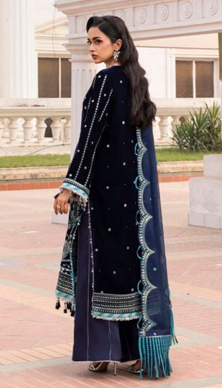 WULC25E34206 DYED EMBROIDERED VELVET SHIRT WITH DYED EMBROIDERED MONAR DUPATTA