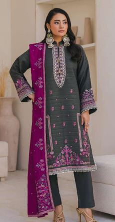 AFSANAH PERIDOT 487 B FANCY VELVET EMBROIDERED  SHIRT WITH FANCY EMBROIDED VELVET  SHAWL 3PC