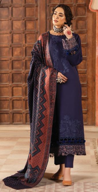 NAGAR CELTS 02 Front Dhanak Embroidered Shirt Sleeves Embroidered Woolen Jacquard shawl Trouser Dyed.