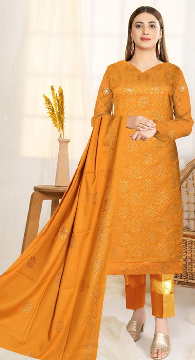 Premium Zari Peach Embroidery Suit With Woolen Embroidery Shawl
